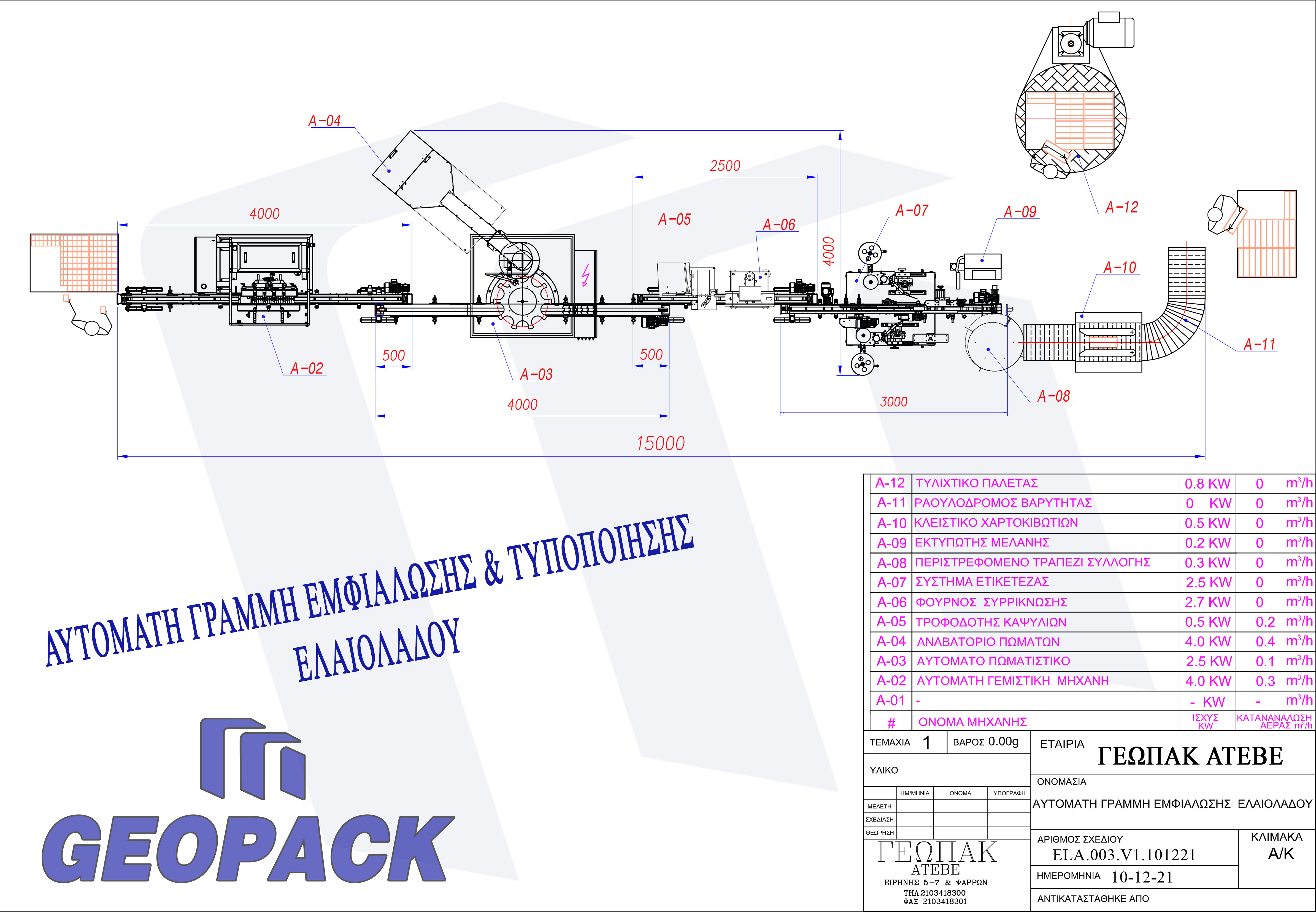 Η γραμμή αποτελείται από τα παρακάτω μηχανήματα: